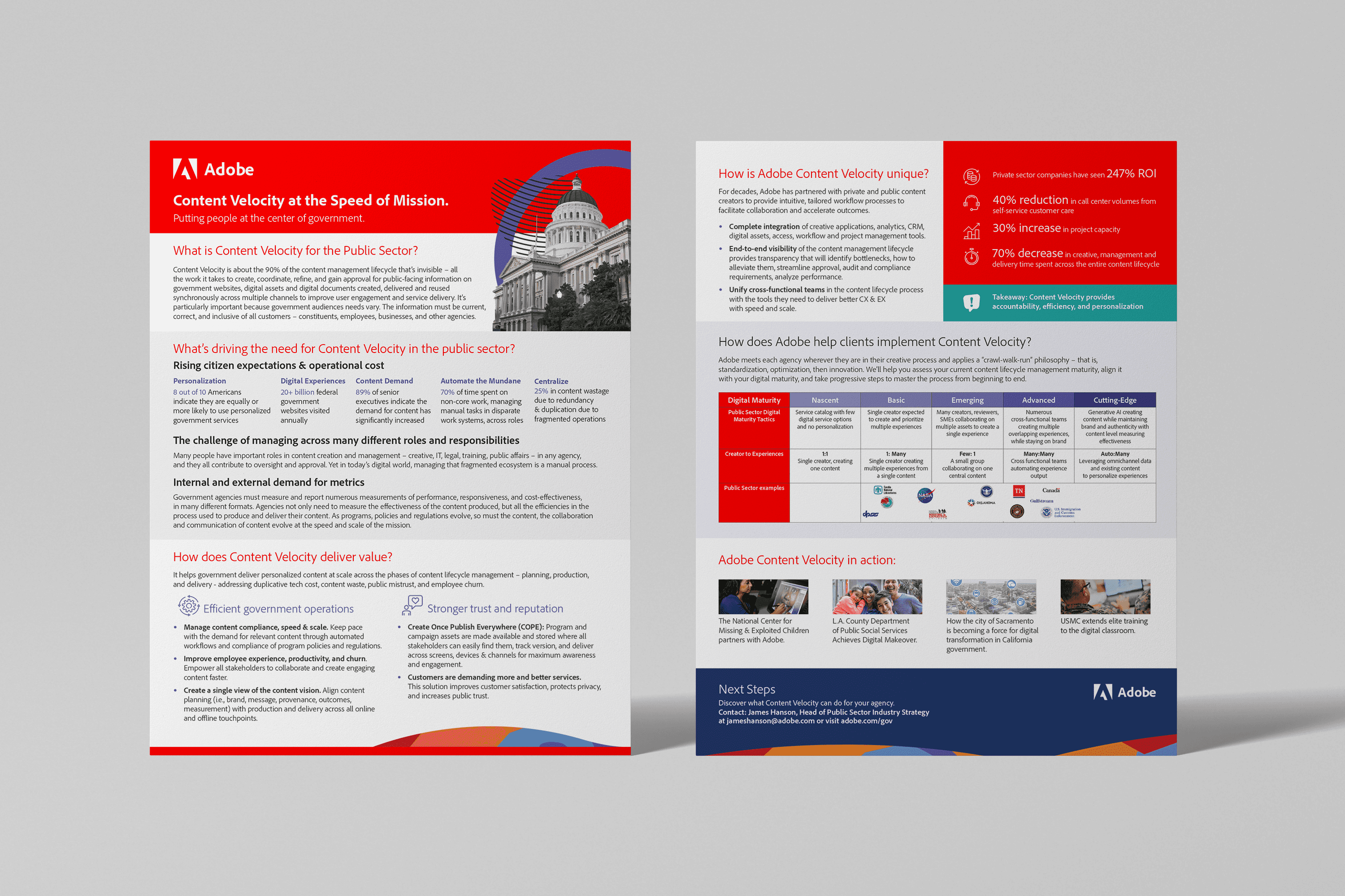 We designed a modular system of materials, each built for a specific moment in Adobe's engagement cycle with government stakeholders.