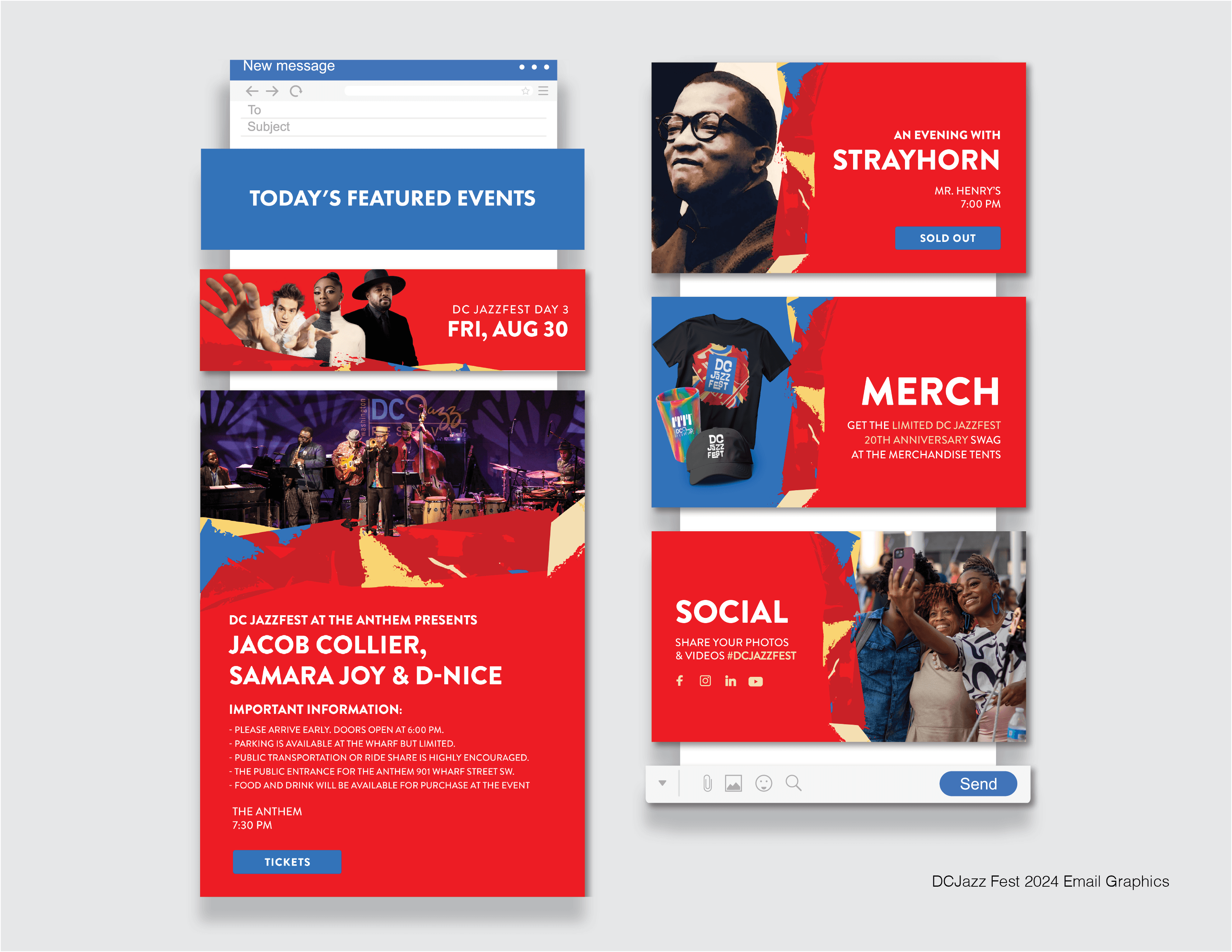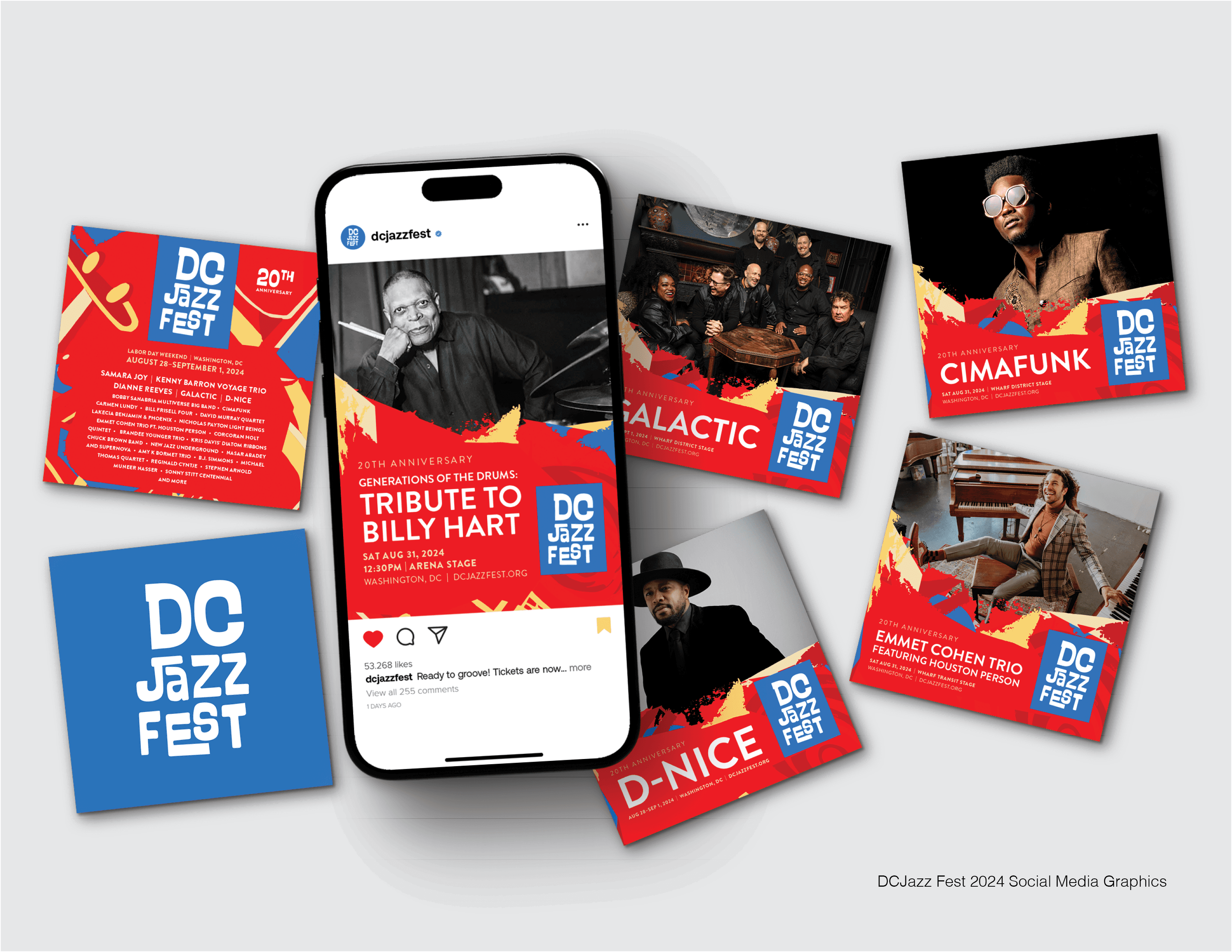 The audience spans jazz purists, first-time listeners, families, international visitors, and D.C. locals. The brand has to speak to all of them without diluting itself. And every year, the creative ships on a timeline dictated by the festival calendar — there's no pushing the deadline when 68,000 people are showing up Labor Day weekend.