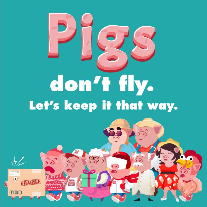 We developed the memorable tagline “Pigs Don’t Fly”, using a charming cartoon pig navigating an airport to capture attention and communicate biosecurity risks in a friendly, approachable way. The campaign spanned social media, digital display, out-of-home placements in major airports, video, and radio.
