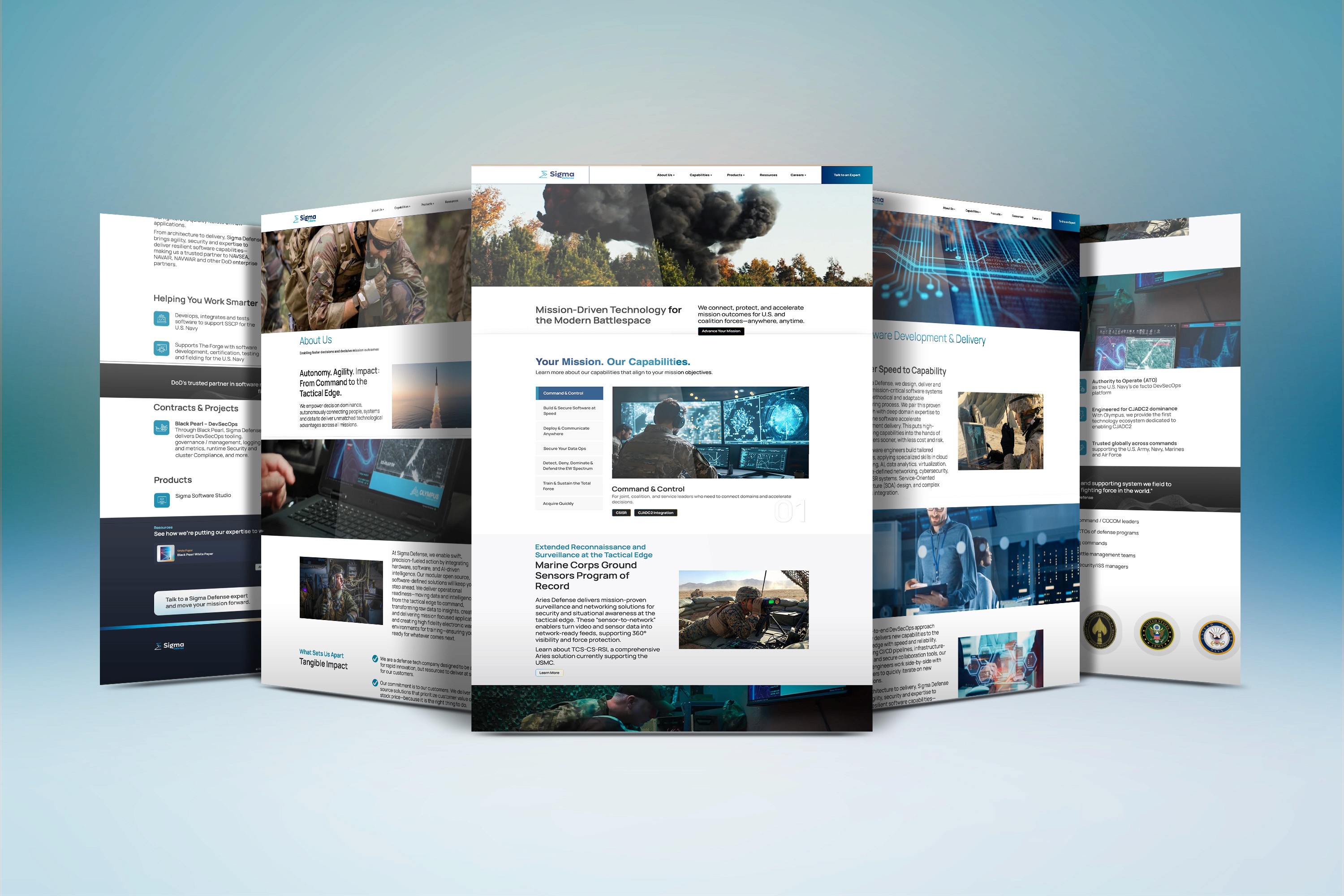 Sigma Defense builds mission-critical technology for the U.S. military — DevSecOps platforms, C5ISR systems, electronic warfare, and tactical communications used by every branch of the armed forces. Their technology was battle-tested. Their digital presence wasn't. We redesigned their website and reinterpreted their brand to match the seriousness of what they actually do.