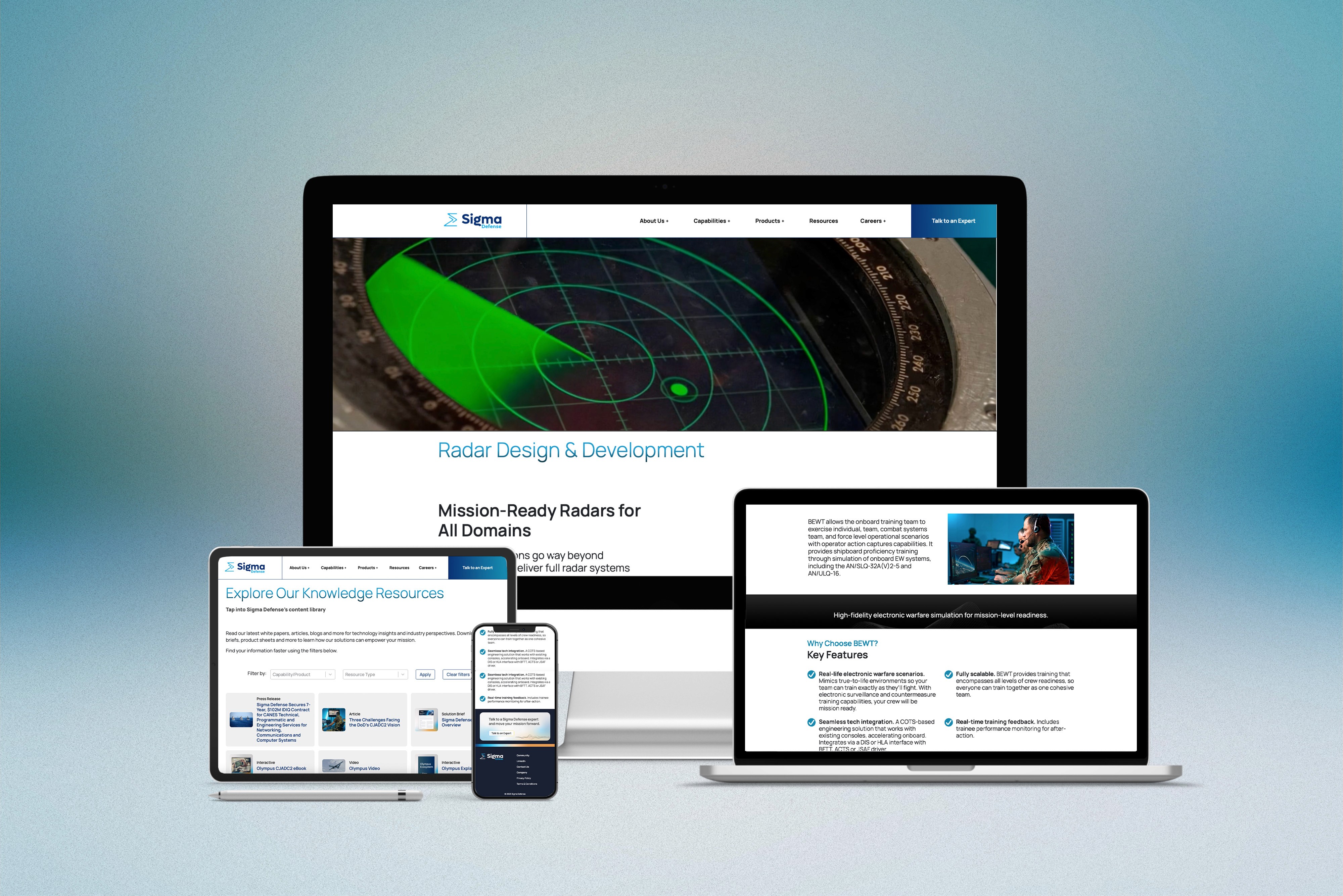 The redesign had to do three things: make Sigma's capabilities immediately clear to the right audience, communicate technical depth without drowning in jargon, and give the brand a visual identity that matched the caliber of the work — modern, precise, and mission-driven.